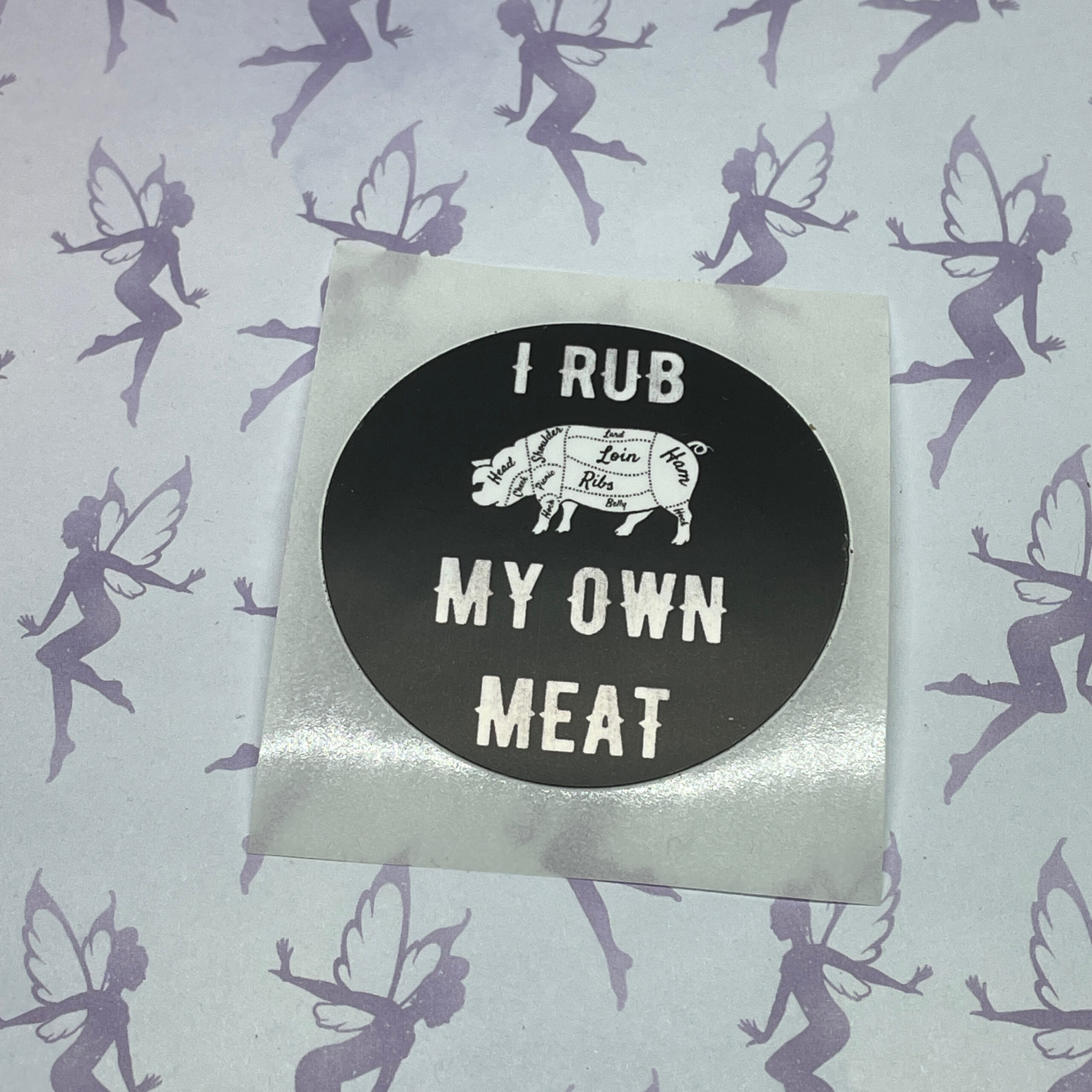 This 2” Sticker features the phrase “I Rub My Own Meat” for a funny twist of words.